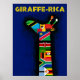 Afiche de viaje de estilo vintage para África que presenta la icónica jirafa. Este poster se hace usando las banderas nacionales de los países en África que son las tierras nativas de la jirafa. Kenya, Camerún, Chad, Níger, Uganda, Namibia, Botswana, Zimbabwe, Zambia, Tanzania, Angola y Sudáfrica.