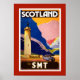 Una hermosa imagen de un poster turístico para Escocia. El poster muestra un faro en el fondo, respaldado por altas montañas. Este poster sería perfecto en cualquier habitación.