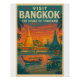 Póster Afiche de viajes retro en Bangkok, Tailandia