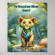 Empodera corazones jóvenes con este león cachorro valiente que se mantiene orgulloso en el bosque, luciendo una expresión suave y una corona dorada. La afirmación inspiradora "Soy Valiente, Incluso Cuando Tengo Miedo" recuerda a los niños que la valentía no significa no tener miedo, sino enfrentar desafíos con coraje y corazón. Este diseño es ideal para el dormitorio de un niño decorado en tonos terrosos de verde y amarillo.
