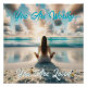 Poster con una cita positiva. Eres digno, eres amado. Ilustracion artístico de una mujer meditando por las olas del océano azul claro, rodeada de cristales de mar, en una playa de arena, con hermosas nubes flotando en el cielo.