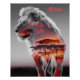Un ilustracion de León con insertos de las llanuras africanas en su cuerpo y piernas. Es una exposición doble de 2 ilustraciones, uno de los Leones y el otro de las Llanuras Africanas al atardecer.