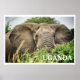 Photograph of an elephant behind a bush, Uganda. Customizable text.