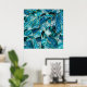 Póster Agante azul turquesa Triángulo geométrico de oro n