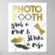 En gris oscuro y dorado impreso, un cartel de cabina de fotos para bodas, dulces dieciséis y otras celebraciones, con accesorios como gafas, labios, bigote y corbatín combinados con divertido texto a mano.