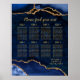 Esta elegante y glamurosa tabla de bodas cuenta con un fondo de mármol agate azul marino con falsos toques purpurinas dorados. El texto combina el guión manuscrito y las fuentes sans serif modernas para un aspecto elegante y sofisticado. Esto será perfecto para otoño y bodas de invierno.