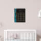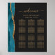 El borde izquierdo de esta elegante carta de asientos de boda moderna presenta un borde de ágata de acuarela teal recortado con brillo dorado falso. La palabra "bienvenidos" aparece en la parte superior en elegante letra manuscrita de color dorado con florituras al principio y al final. Personalice con los nombres de la novia y el novio y la fecha de la boda en letra itálica. Edite las doce listas de mesas con números de mesa y los nombres de hasta diez invitados por mesa en texto de color dorado sobre fondo oscuro.