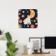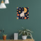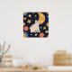 Póster Agradable pequeño gatito entre estrellas y peces