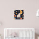 Adorable lindo gatito de gatito entre estrellas, luna, planetas y peces de noche. Diseño fantástico.