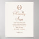 Invite a los bodas a que les gusten sus buenos deseos y sus recuerdos con un elegante cartel de libro de visitas. una simple corona de laurel enmarcando las iniciales de la pareja. Inspirado en las invitaciones de los años 20, combina la formalidad clásica con el estilo moderno, utilizando un tipo de letra serif tradicional, un guión de caligrafía vintage y un arreglo limpio. Personalice la plantilla con un nombre y un mensaje. También puede personalizar del color de fondo mediante la herramienta de edición de diseño. Colores impresos: marrón terracota y crema de marfil blanquecino. Compra la colección para encontrar artículos de papelería y suministros a la venta en línea!