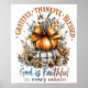 Diseño pacífico y colorido con una hermosa escena otoño/otoño con calabaza y flores. El colorido texto inspirador dice: "Agradecido gracias bendecido. Dios es fiel en cada estación". Este diseño está disponible en una amplia variedad de productos.