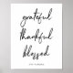 Este moderno y minimalista poster blanco y negro presenta la inspiradora cita "agradecida, agradecida, bendecida" en la moderna tipografía escrita a mano.