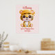 Un lindo bebé tigre con sombrero en cartel rosa para el cuarto de una niña pequeña. -
