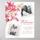 Póster de bienvenida de boda de flores de orquídea roja Phaiocalanthe Parkside botánica pintada a mano. Personalice con los nombres de su boda y dos fotos. Otros artículos coincidentes están disponibles. © Pintura y diseño botánico original de acuarela a mano por Sarah Trett para www.mylittleedenweddings.com en Zazzle.