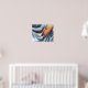 Un diseño artístico abstracto de agua fluvial en azul, negro, naranja y blanco.