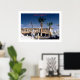 En este Poster - Sí, esta visión parece como si estuviera de cabeza. En realidad es una fotografía directa, sin efectos de filtro, original de ZoeSPEAK de la reflexión en un canal en la costa del golfo de Florida. Vemos pedazos de botes atracados frente a una casa, con palmeras y un cielo azul profundo. Pero todo está maravillosamente rizado. Cerca de la parte superior de la imagen hay un reflejo, en letras rojas, de las palabras "agua...reflexión".