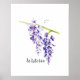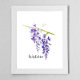 Bonito estilo botánico acuarela pintura de glicinia morada colgante en flor, con texto sobre fondo blanco