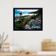 Un cuadro digital de un águila calva encaramado en un tronco de madera de deriva inundado en la costa pedregosa de Alaska; las montañas se encuentran a lo lejos. También aparece el texto "Alaska".