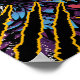 Esta obra de arte dinámica y vibrante cuenta con un acercamiento a la cabeza de un águila. El fondo es una mezcla caótica de colores y texturas audaces, incluyendo rayas, puntos y marcas de claw, creando una composición visual llamativa y energética. El estilo general de la obra es atrevido y gráfico, con un toque de expresionismo abstracto.