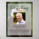 El póster conmemorativo perfecto para saludar a familiares y amigos cuando ingresan a la celebración de la vida de su ser querido. El diseño presenta una foto personal cuadrada, 5 líneas de texto personalizado y una foto de fondo de una escena natural de un águila. Puede cambiar fácilmente esto con el fondo de una foto propia. Clásico pero único, esta plantilla es muy fácil de personalizar y también hará un maravilloso recuerdo conmemorativo.