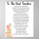 Un profesor es alguien que puede tener uno de los mayores impactos en tu vida. Graduarse de la escuela o ir a otro grado es un gran logro, y no se podría hacer sin su profesor. Este mejor poema para profesores es el regalo perfecto de fin de año para la apreciación de los profesores. Dejar atrás un recuerdo duradero antes de pasar a la siguiente nota, y hacer saber a su profesor cuánto te han ayudado. Tu profesor puede usar a este poster como arte mural, o como un aguijón.