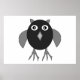 Este poster presenta una lechuza espeluznante con ojos enormes y garras retorcidas. Su cuerpo es negro y sus alas, orejas, garras y pico son grises. Este búho espeluznante puede esconderse nunca visto bajo la cubierta de la oscuridad y es el material de las pesadillas.