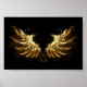 Unas alas brillantes de ángel dorado sobre un fondo oscuro. Alas de oro.