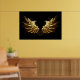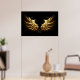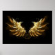 Unas alas brillantes de ángel dorado sobre un fondo oscuro. Alas de oro.