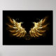 Unas alas brillantes de ángel dorado sobre un fondo oscuro. Alas de oro.