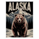 Póster Alaska Grizzly Bear & Snowy Mountains - Rustic