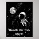 Este es un poster divertido para la habitación de un niño, sobre todo a uno que le encanta el espacio y los astronautas. El poster presenta una escena espacial con un pequeño astronauta, la Tierra y las estrellas y las palabras "¡Alcanzar las estrellas!" Las palabras del poster son personalizable con las suyas o se pueden dejar tal cual.
