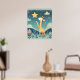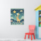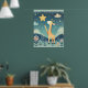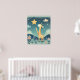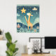 Esta obra de arte retrata una encantadora escena de una jirafa que se acerca a una estrella brillante y dorada con el telón de fondo de un cielo estrellado. El largo cuello de la jirafa y su gentil expresión transmiten una sensación de asombro y curiosidad. El ilustracion se presenta en un estilo suave y caprichoso, con texturas delicadas y una paleta de colores relajante, creando un ambiente apacible y encantador.