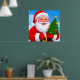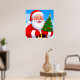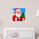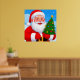 Un vibrante Santa de dibujos animados sonríe cálidamente, sosteniendo un pequeño árbol de Navidad decorado contra un cielo azul. Perfecto para saludos navideños, temas familiares y campañas minoristas festivas. Ideal para pancartas de temporada, publicaciones en redes sociales y guías de regalos.