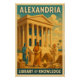 Afiche de viajes retro del Antiguo Egipto, con la Biblioteca de Alejandría en un estilo majestuoso