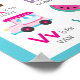 Diseño del alfabeto educativo divertido A a Z con letras fundas superiores e inferiores y gráficos bonitos sobre un fondo azul turquesa. Los gráficos incluyen una manzana, bicicleta, quequito, perro, torre Eiffel, flores, guitarra, casa, helado, medusas, gatito, llama, cuenco mixto, narwhal, pulpo, piña, reina, arcoiris, pez estrella, tipi, unicornio, van, sandía, xilófono, yate y cebra. Gráficos de PrettyGrafik