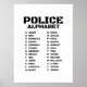 El diseño "Alfabeto policial de Adam a Zebra" es una referencia única y práctica al alfabeto fonético policial, con el propósito de aumentar la claridad de la comunicación. Es común que las fuerzas del orden lo usen para reducir la confusión cuando se escriben palabras, particularmente por teléfono o radio. Aprender este alfabeto aumenta tu habilidad para comunicarte claramente en situaciones importantes.
