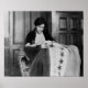 Vieja foto de Sufragette y Alice Paul, líder de los derechos de voto de las mujeres, cosiendo la bandera del sufragio, entre 1912 y 1920.