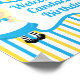 Alicia linda en la fiesta de cumpleaños de Wonderland poster de bienvenida con un divertido tema del libro infantil. La niña pequeña Alice con su vestido azul y el sombrerero loco se sientan en una tabla de espuma de rayas azules amarillas. Personalizar esta original decoración de fiesta de té con tu propio texto y celebra a tu hijo en su día especial.