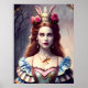 Alicia, inspirada en Alicia en el País de las Maravillas, lleva una corona de conejo real como reina