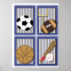 Nuestro bonito conjunto de cuatro impresiones deportivas se puede cortar en cuatro impresiones 5x7 separadas y enmarcadas, o se puede dejar como una gran impresión. ¡Estas hermosas fotografías de arte en las paredes de los deportes serán una gran incorporación a cualquier guardería, sala de juegos o dormitorio con temática deportiva!