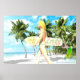 ¡Aloha! Paisaje de ensueño con un chica invitándonos a navegar y divertirnos, con total libertad. Dibujo creado con el gráfico de PC 3d 2d.