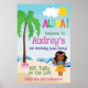 Playa tropical poster de la fiesta de cumpleaños de Luau, con un bonito chica hula, palmeras y playa. Este signo se convertirá fácilmente a los tamaños 20 x 30 o 24 x 36, con texto fácil de personalizar. Complete su fiesta temática de verano con este cartel personalizado, ideal para niños o adultos.