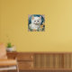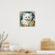 Poster con gatito de estilo Art Nouveau de Alphonse Mucha! Un gatito blanco y mullido con ojos azules posa con flores amarillas. ¡Un regalo para los amantes del gato y de los coleccionistas Art Nouveau!