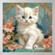 Poster con un gato blanco al estilo de Alphonse Mucha! Este gatito de ojos azules y esponjoso posa con flores rosadas y mantas azules. ¡Un regalo fabuloso para los amantes del gato y de los coleccionistas Art Nouveau!