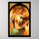 Poster de frutas Alphonse Mucha. Poster de litografía de 1897. El artista checo Alphonse Mucha pintó una variedad de alegorías diferentes a lo largo de su carrera. La fruta representa a una hermosa mujer que sostiene una armadura de uvas moradas, peras verdes, higos y manzanas rojas. El cabello oscuro de la mujer está adornado con flores y hojas, y lleva un vestido de nuevo arte azul claro con clásicos de plata y brazalete dorado. Un hermoso regalo para los fanáticos de Mucha, posters de arte de Nueva York, e impresiones vintage.