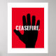 Alto al fuego mano negra blanca negrita personalizado texto anti poster de guerra / signo. Texto blanco, mano negra, fondo rojo. Texto de personalizable completo. Conflicto entre Oriente Medio y Gaza.