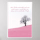 Am Ende wird alles gut sein und wenn es nicht gut ist, dann ist es nicht das Ende. Angelehnt y en Zitat von Oskar Wilde. Einzelner Baum auf pinker Wiese mit blauem Himmel.