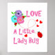 Ama a una pequeña mariquita dulce y adorable diseño para niños pequeños con flores caprichosas, corazones de amor rojos y mariquitas.