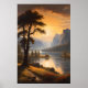 Un atardecer dorado baña valles serenos donde árboles antiguos guardan secretos de montañas brumosas y lagos como espejos. Luz, calma y magia natural invitan a la contemplación eterna.