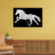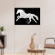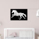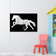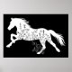 Espléndida silueta blanca de un caballo galopante con acentos naturales, ideal para los aficionados a la vida silvestre y a los temas ecuestres que buscan prendas de vestir elegantes de inspiración natural.